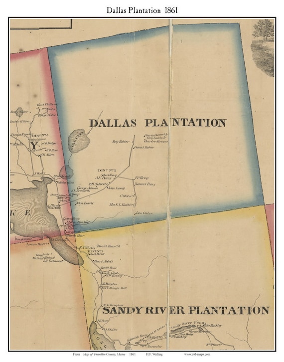 Dallas Plantation 1861 Old Town Map With Homeowner Names Maine