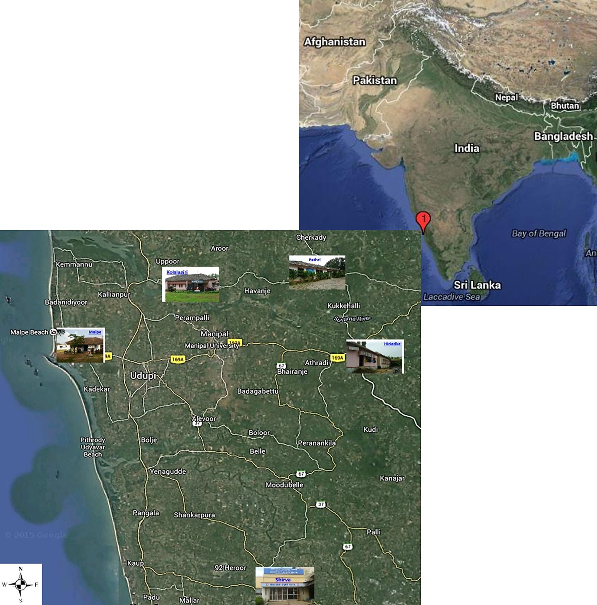 Geographical location of PHCs within Udupi taluk, Karnataka, India.